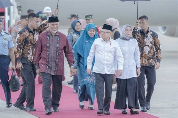 Padang, Rakyatterkini.com – Wakil Presiden Republik Indonesia Ma’ruf Amin, didampingi Hj. Wury Amin beserta rombongan melakukan kunjungan kerja ke Sumatera Barat.