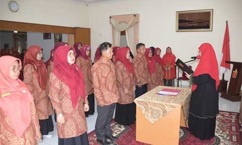 Pelantikan tersebut ditandai dengan penandatanganan berita acara dan penyerahan bendera pataka SOIna dari Ketum SOIna Sumbar, Ny Ny Harneli Mahyeldi kepada Ketum SOIna Agam, Ny Yenni Andri Warman.