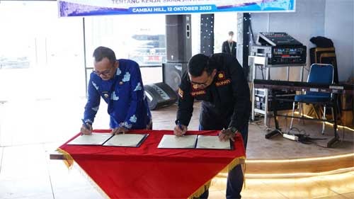 Solok, Rakyatterkini.com – Meningkatkan pertumbuhan ekonomi dan pelayanan masyarakat, Pemkab Solok dan Kampar menandatangani MoU. Kerjasama diteken bupati Solok, Epyardi Asda dan Pj bupati Kampar, Muhammad Firdaus, di Kawasan Wisata Cambai Hill, Kamis 12 Oktober 2023.