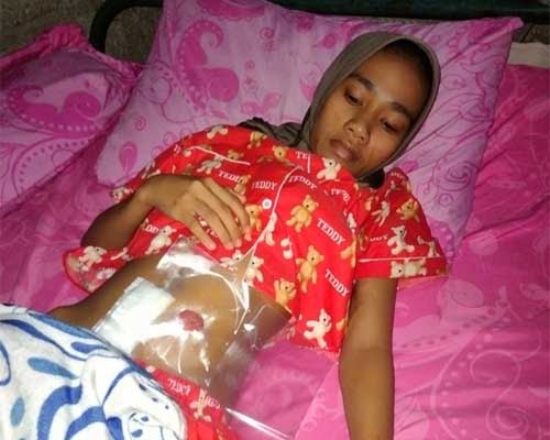 Solsel, Rakyatterkini.com – Seorang wanita muda terbaring lemas dengan badan kurus sambil memegang perutnya setelah dioperasi oleh tim medis.