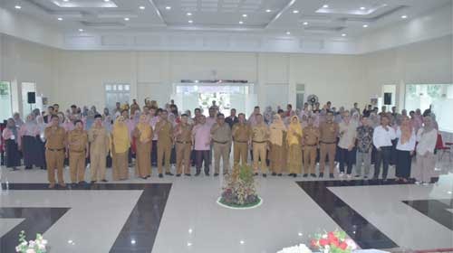 Asisten I Setda Agam, Rahman, bersama kepala OPD foto bersama pada pembukaan Festival Kampung Inggris 2023.