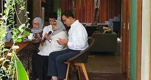 Dalam suasana khidmat, Anies tampak meminta doa restu dengan duduk di sebelah kiri ibunya. Keluarga Anies, termasuk istri dan anak-anaknya, dengan khidmat mengikuti doa yang dibacakan oleh Aliyah Rasyid.