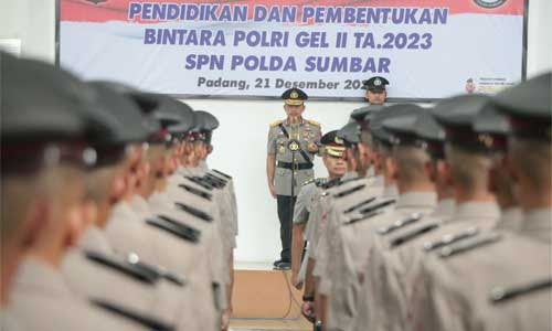Pelantikan sekaligus penutupan pendidikan Bintara Polri gelombang II T.A 2023 tersebut, di Gedung Dojo Wira Satya SPN Polda Sumbar, Kamis (21/12/2023) pagi.