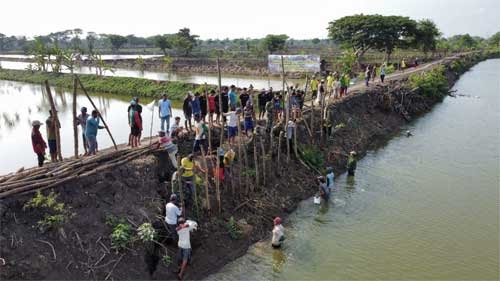 Dandim 0812/Lamongan, Letkol Arm Ketut Wira Purbawan, menjelaskan bahwa karya bakti tersebut fokus pada perbaikan tanggul yang mengalami keretakan dan ambles hingga kedalaman dua meter dengan panjang 20 meter.