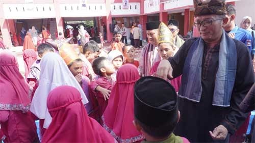 Di depan seluruh siswa, Hendri Septa berpesan. “Ingat ya anak-anak semua, surga itu berada di bawah telapak kaki ibu,” katanya.