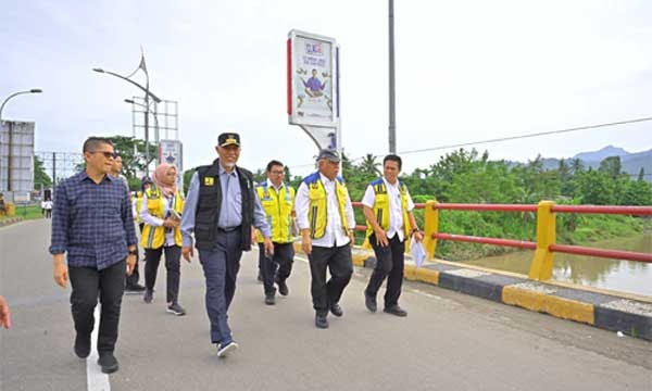 Menteri PUPR, Basuki Hadimuljono, bersama Gubernur Sumbar, Mahyeldi, serta rombongan tinjau lokasi terdampak bencana.