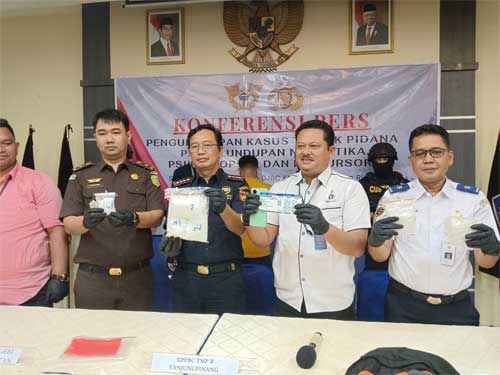 Pada Kamis (14/3/2024) di Tanjungpinang, Kepala Kantor Bea Cukai Tanjungpinang, Tri Hartana, Kasat Narkoba Polres Bintan, AKP Syofian Rida, Kejaksaan Negeri Bintan, PT Pelindo, KSOP Kijang, adakan konferensi pers bersama insan media.